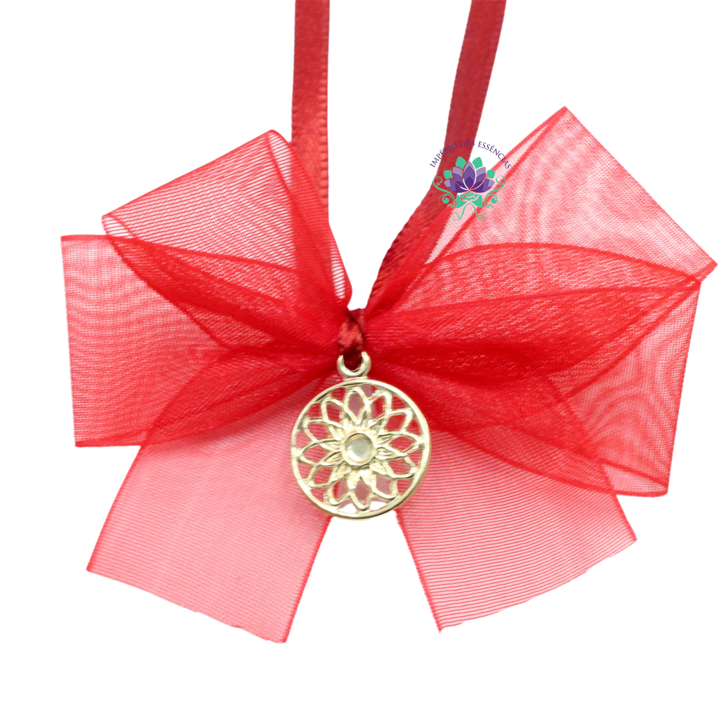 Lindo laço feito com fita de cetim e voal na cor vermelho com detalhes dourada, ideal para decorar vidros de home spray, difusores, sabonetes e outros.
