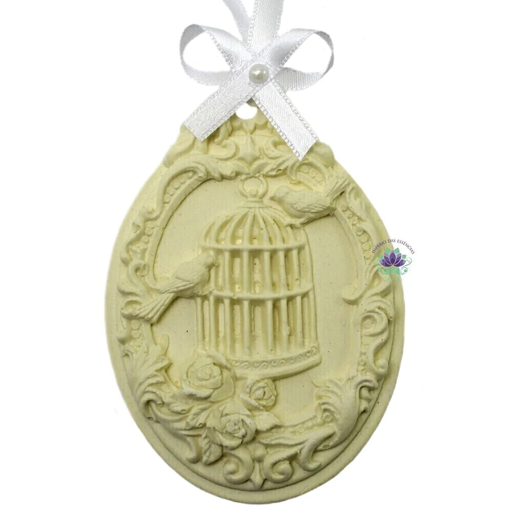 Que tal na cor amarelo... Já pensou em aromatizar com estilo? Com este lindo pingente de gesso em formato de gaiola, você pode criar sachês para cabides, armários e gavetas. Por ser um material poroso, o gesso absorve facilmente a fragrância do aromatizador, permitindo que você perfume seus ambientes de forma delicada e sofisticada. Além disso, estes pingentes são perfeitos para serem usados como lembrancinhas em batizados, casamentos, aniversários e outras celebrações, pois estão disponíveis em uma variedade de temas e cores. Combine diferentes essências e encante com essas peças exclusivas.